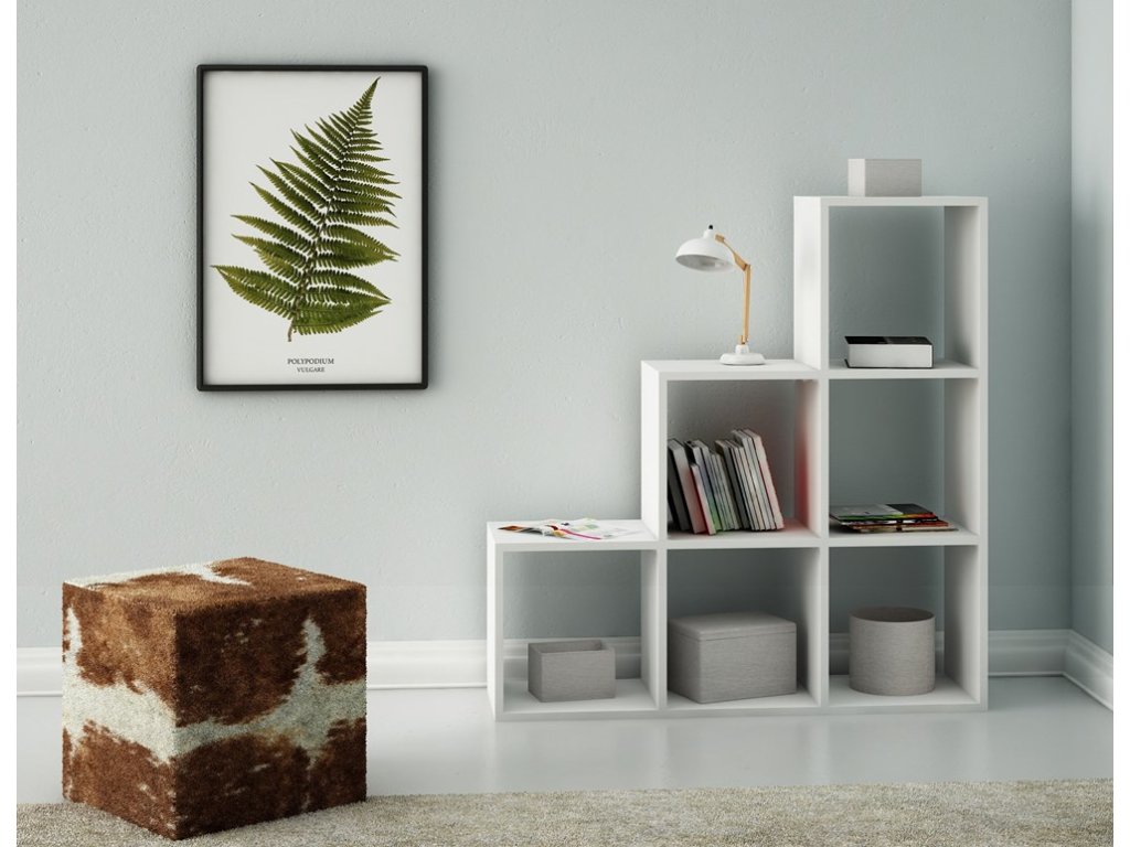 Moderní regál STEP RS-30 je skvělým řešením pro uložení knih, hraček, drobnosti a dekorací. Skvělé se hodí do obývacího pokoje, chodby nebo dětského pokoje. Regál má 6 přihrádek o rozměru 36cm x 36cm. Může sloužit i jako oddělení místnosti, protože vypadá dobře z každé strany. Je vyroben z kvalitní LTD desky, která má tloušťku 16 mm a je nenáročná na údržbu. Dodáváme v demontu.